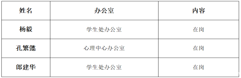 2025年10月9日-10月12日学生工作部(学生工作处)、武装部领导去向告知